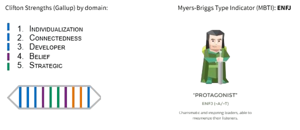 W swojej pracy mentoringowej wyspecjalizowałem się zwłaszcza w narzędziu Gallup CliftonStrengths. Jeśli znasz swój profil, z przyjemnością pomogę Ci przełożyć tę wiedzę na konkretne działania tak, by zmaksymalizować korzyści z minimum wysiłku z Twojej strony. Moje własne talenty (Indywidualizacji, Rozwijania innych, Strategii) dobrze mi służą w dostrzeganiu i wzmacnianiu tego, co w innych najbardziej wartościowe, w sposób adekwatny do ich potrzeb i możliwości.